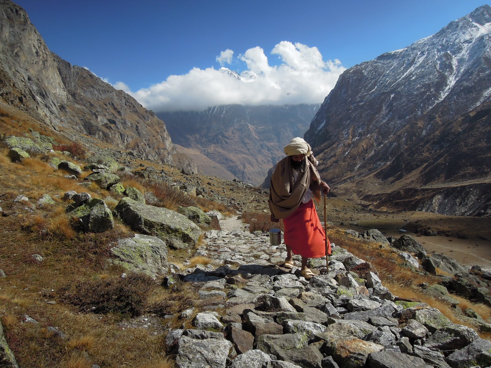 Aún con todo entiendo a los peregrinos que buscan su pureza, su situacion en medio de los Himalayas, rodeado de montanyas enormes sobre un cielo tan azul y brillante que parece a punto de romperse.