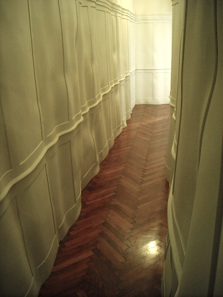 - Melanie Smith, Mexico, texturados dibujos que parecían paridos por el edificio, camuflados por el moaré.