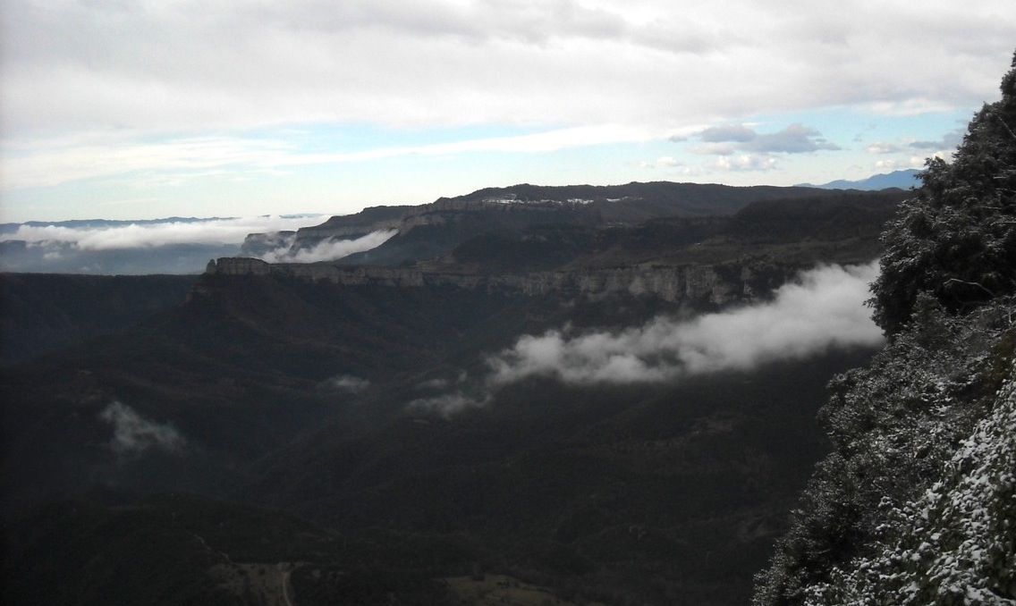 En esta clásica ruta al Bastiments he descubierto una nueva forma de disfrutar la montaña en invierno, intensamente y sin atajos e intensamente. Las raquetas de nieve afectaron a mi pensamiento en cuanto me las puse, me contagió un espíritu de esquimal, de pingüino, íbice, incluso duende. A cada paso empecé a distinguir tonos de blancos, las texturas de la nieve y sus crujidos, a aprender nuevas gramáticas y lógicas. Esos sencillos artefactos me permitían transitar en el mundo casi submarino de los espacios invernales de tonalidades azules y formas onduladas, pude andar por superficies llenas de destellos y sentir el camino azucarado, las distancias blancas, los cambios de perspectiva en los valles, la engañosa dulzura de las lomas, la densidad de las distancias en esa blancura afilada. Y relacionarme con la montaña de tú a tú con respeto, sabiendo que te estás ganando estar a su altura.