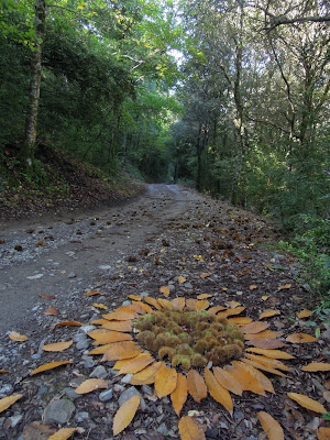 erizos que se abren como flores para dejar salir las orondas castañas. Esos erizos fueron un
